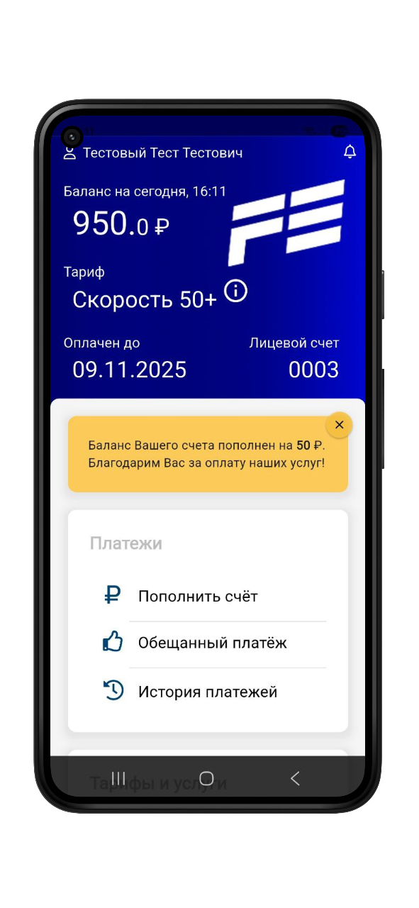 • Пополнить счёт и контролировать расходы;